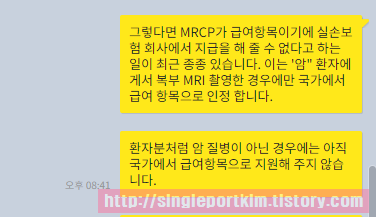 MRCP는 국가에서 지원해 주지 않는 비급여 항목 입니다.