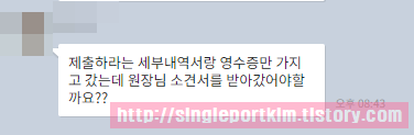 제출하라는 세부내역서랑 영수증만 가지고 갔는데
