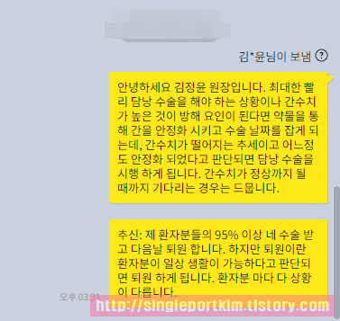 추신: 제 환자분들의 95% 이상 네 수술 받고 다음날 퇴원 합니다. 하지만 퇴원이란 환자분이