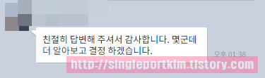 현재 카톡 방에서 답변 드리도록 하겠습니다