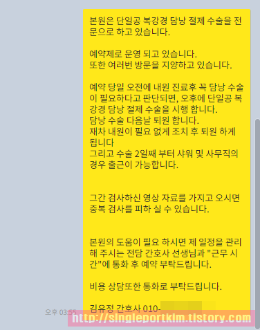 오후에 단일공 복강경 담낭 절제 수술을 시행 합니다.