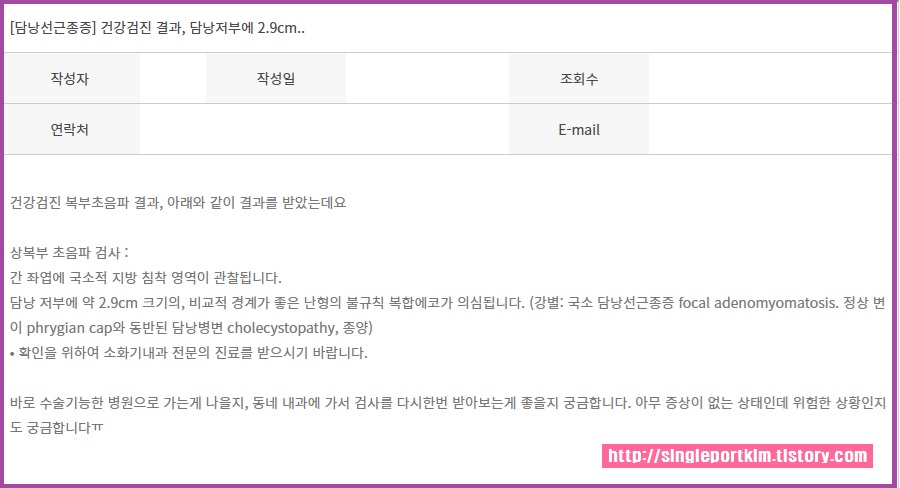 '온라인상담 > 담낭선근종증' 카테고리의 다른 글