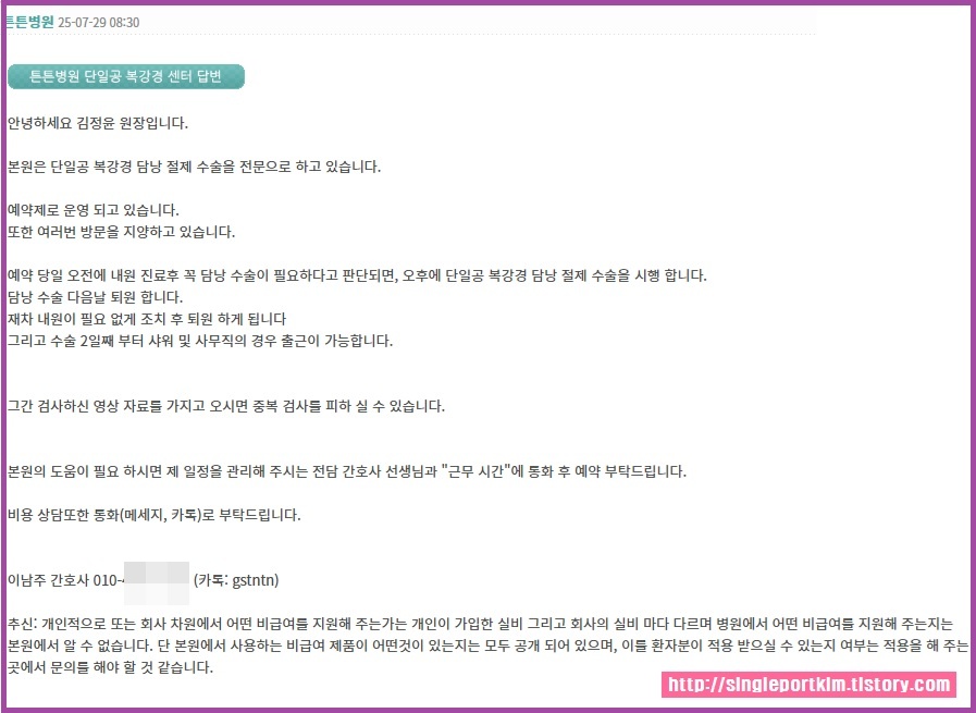 알아보니 튼튼병원이 담낭제거에 유명하다는걸 알았고