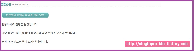 다름이 아니라 수술후 요즘 오른쪽 아래쪽이 뜨믄뜨믄 "두근!" 하면서