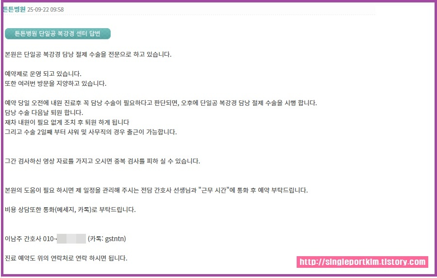 담낭 수술 다음날 퇴원 합니다.