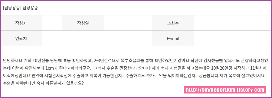 '온라인상담 > 담낭용종' 카테고리의 다른 글