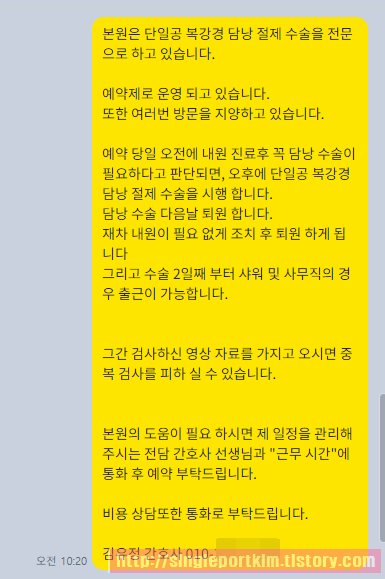 본원은 단일공 복강경 담낭 절제 수술을 전문으로 하고 있습니다.
