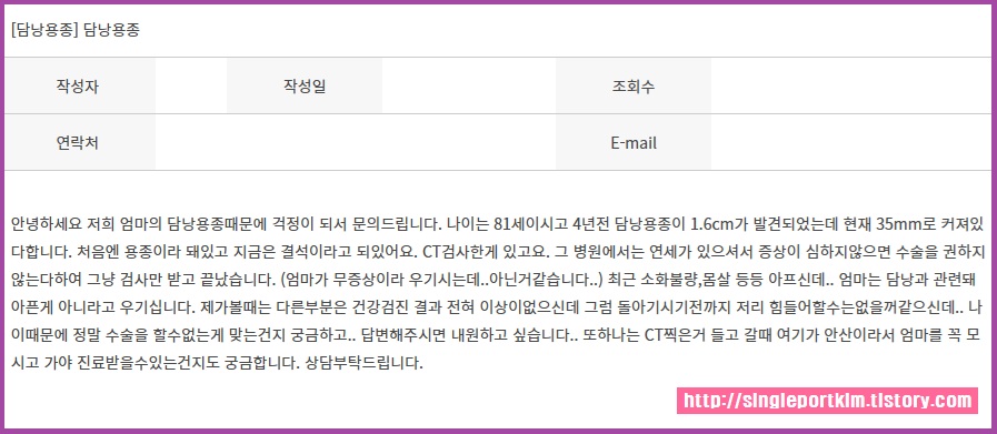 나이는 81세이시고 4년전 담낭용종이 1.6cm가 발견되었는데 현재 35mm로