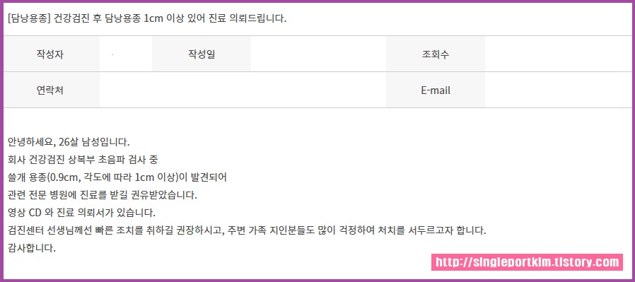 '온라인상담 > 담낭용종' 카테고리의 다른 글