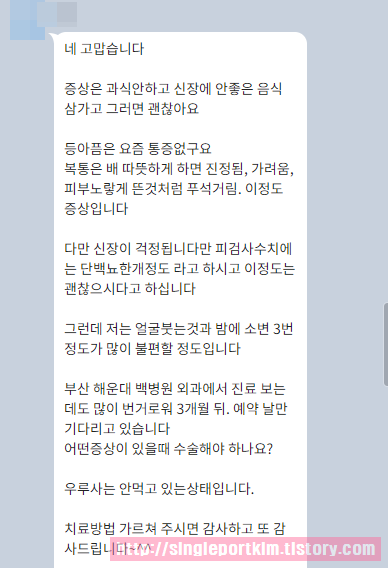 부산 해운대 백병원 외과에서 진료 보는데도 많이 번거로워 3개월 뒤.