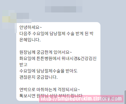 안녕하세요~다음주 수요일에 담낭절제 수술 받게 된 ***입니다.