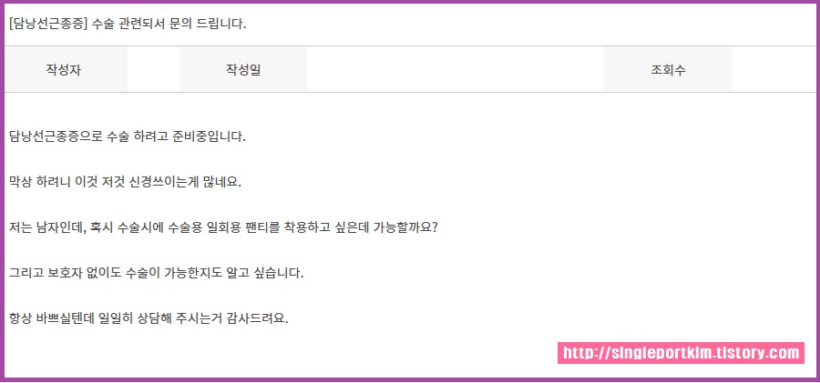 담낭선근종증으로 수술 하려고 준비중입니다.