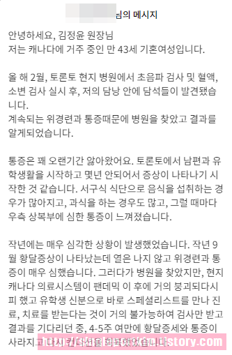 일상이 힘들어졌고, 한국에 방문하여 원장님께 다시 진료받고 담낭을 절제해야하는