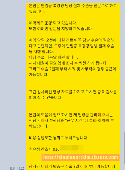 오후에 단일공 복강경 담낭 절제 수술을 시행 합니다.