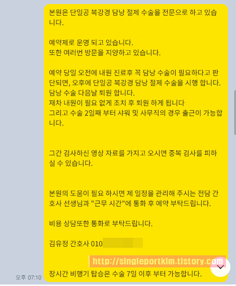 오후에 단일공 복강경 담낭 절제 수술을 시행 합니다.