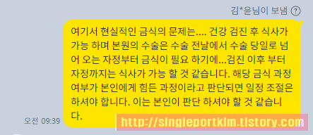여기서 현실적인 금식의 문제는 건강 검진 후 식사가 가능하며