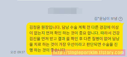 작년 한국에 있을때 담석증 진단을 받고 시간이 없어