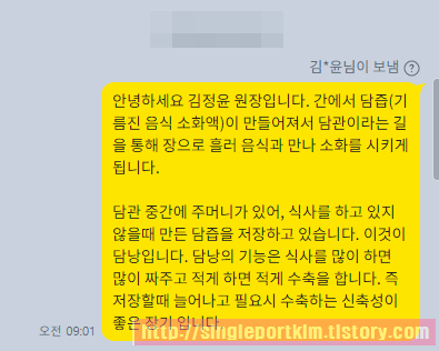 안녕하세요 김정윤 원장입니다. 간에서 담즙(기름진 음식 소화액)이 만들어져서