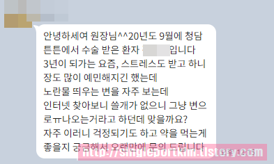 안녕하세여 원장님^^ 20년도 9월에 청담튼튼에서 수술 받은 환자 ***입니다