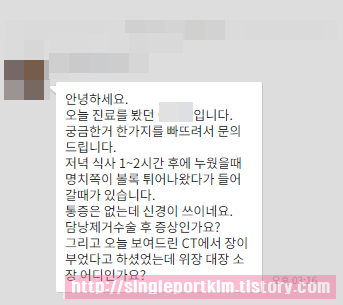안녕하세요. 오늘 진료를 봤던 ***입니다.