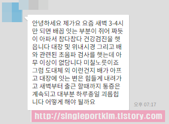 쥐어 짜듯이 아파서 참다 참다 건강검진을 했습니다.