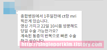 계속된 통증의 반복으로 빠른 수술 하고 싶습니다.