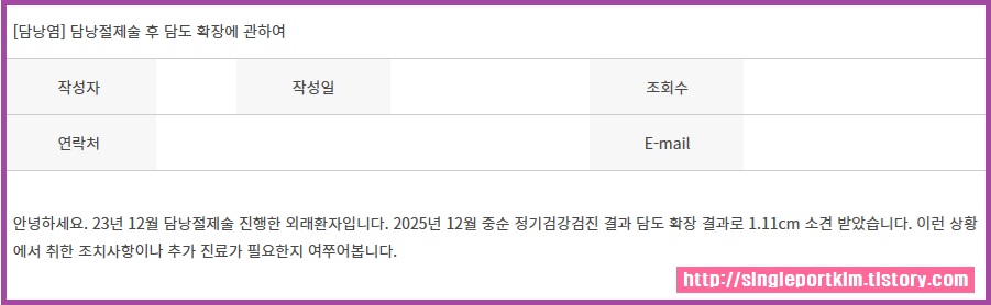 안녕하세요. 23년 12월 담낭절제술 진행한 외래환자입니다.