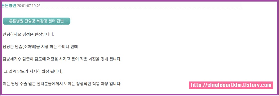 이는 담낭 수술 받은 환자분들에게서 보이는 정상적인 적응 과정 입니다.