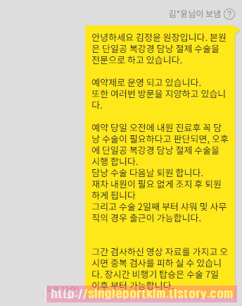 판단되면 오후에 단일공 복강경 담낭 절제 수술을 시행 합니다.