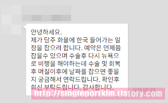 일정 잡히는대로 연락드려서 스케줄 잡도록하겠습니다.