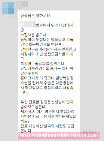 말을 듣고 피검사와 소변 심전도검사를 마치고 복강경수술날짜를 잡았으나